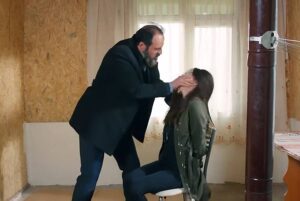 Но Зейнеп бързо го рита в корема с цялата си сила. Мъжът отстъпва с клетва на уста, а Зейнеп го заплашва като крещи: