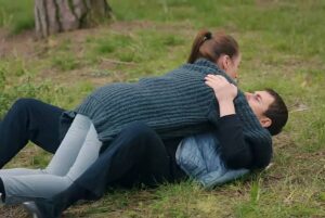 Бюлент я хваща за раменете и я стиска силно.