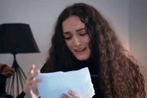 Нана се прибира и започва да стяга куфар. Ръцете ѝ треперят. Всеки жест е отчаян и несигурен. Изведнъж от горния рафт пада дървената кутия с писмата на Азиз. Хартията е пожълтяла, мастилото, леко избледняло, но думите… думите са живи.