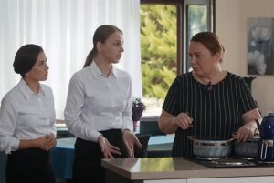 В кухнята, жените надничат през прозореца, само гласът на Адалет нарушава тишината: – Момичета, стига сте се зяпали! Срамота. На работа!