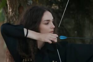 Нана се съсредоточава. Поставя стрела в тетивата, издърпва бавно, уверено, с неподправена грация… и пуска. Стрелата се забива право в целта. Юсуф е впечатлен, очите му блестят.