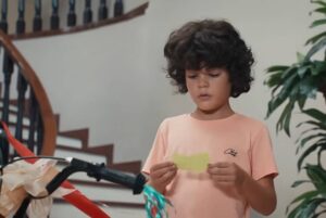 „Миличък… Надявам се, че подаръкът ти харесва. Ако е така, ела да ме целунеш по бузата. Леля ти, много те обича!“