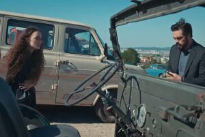 Действието прескача. Автомобилът на Яман се носи по пътя, а в тишината между него и Нана напрежението сече въздуха като нож. Тя го наблюдава внимателно, а погледът ѝ се спира върху пистолета, който се подава от колана му. Мисълта проблясва ярко в ума ѝ:
