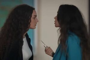 Али въздъхва и леко присвива очи. Раздразнението му е очевидно, но Ягмур пристъпва към него и вдига поглед, в който се чете отчаяна молба.
