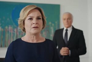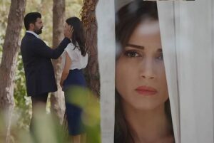 Камерата ни показва Аслъ, която ги наблюдава от прозореца на хола. Гневът ѝ е видим.