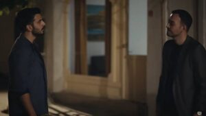 Точно в този момент вратата на кантората се отваря и Нуршах излиза. Облечена е семпло, но стилно. Лек грим, интересни аксесоари – изглежда различно, по-особено. И двамата мъже поглеждат към нея. Кенан я поглежда… и за секунда нещо проблясва в очите му, но бързо отстъпва място на гнева. Осъзнава, че тя се е приготвила за вечерята. Без да каже и дума, напрегнат, се обръща и си тръгва.