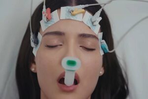 В същото време камерата ни пренася в стаята за електрошока терапия, където санитаря, който се представя за лекар поставя електрошоковите електроди на главата на Хира. Хира изглежда много нервна.
