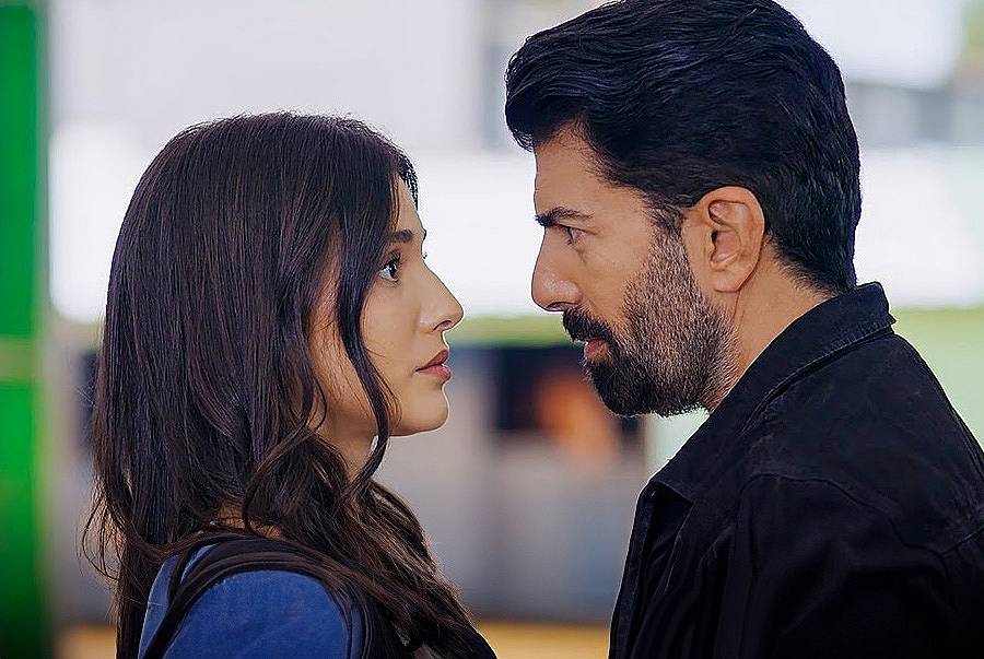 Хира отпива глътка от шишето с вода. Орхун я наблюдава със спокоен поглед.