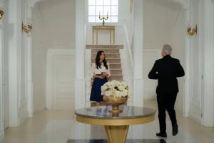 Перихан се приближава с лека театралност, сякаш влиза в роля.