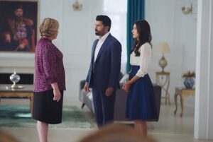 Точно в този момент вратата към работния кабинет на Орхен се отваря. Орхун и Муса излизат и застиват на място. Очите на Орхун първо се спират на майка му, после на Хира… и на хартийките по пода.