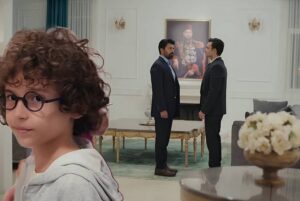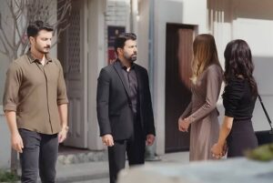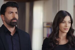 Орхун гледа сестра си Нуршах, чийто неспокоен поглед се върти между него и Хира. До тях стои Кенан, улавяйки всяка емоция между брат и сестра.