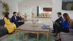 На една от дългите канапета седят Афифе, Орхун и Хира, рамо до рамо, като стабилна крепост. Срещу тях, като в контрас – Нева и Джихангир, студени и уверени. Между двете страни на масата, стои купчина документи. Папки, които носят повече тежест от всеки фамилен портрет по стените.