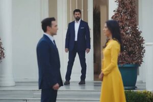 И точно в този миг, от входа на имението се появява Орхун. Очите му попадат право върху сцената пред него – Хира, насаме с Джихангир. Погледът му се присвива.